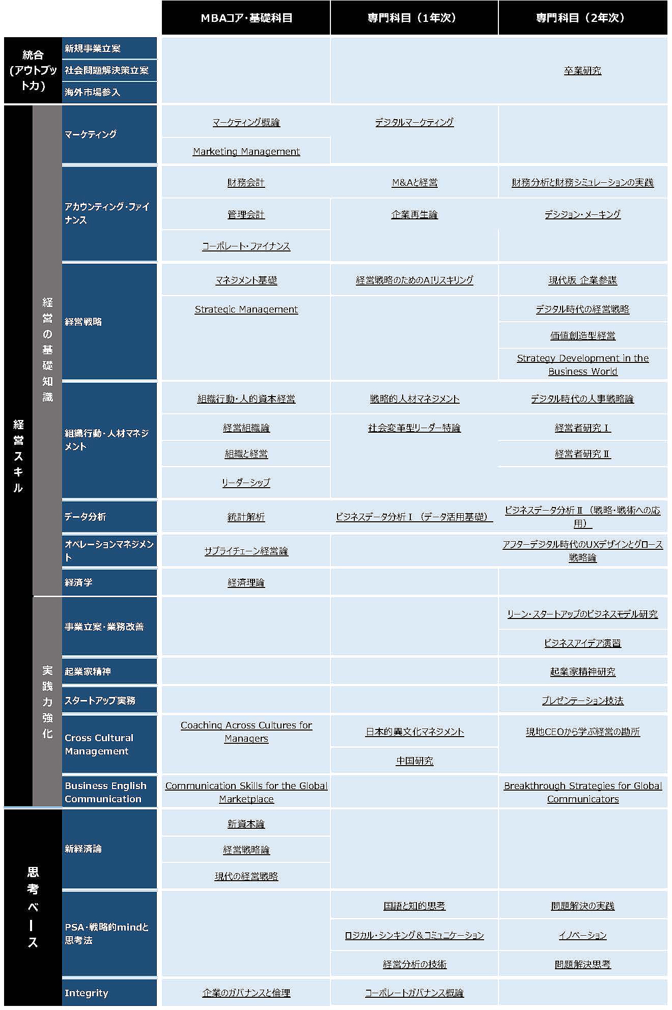 経営知識を存分に活用するために必要なビジネス社会における共通プロトコルである「論理思考」をまず徹底的に学びます。そしてその基礎の上に、マネジメントを体系的に学ぶために必要な分野ごとに理解を深めていきます。